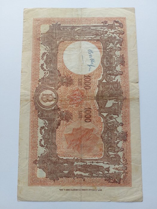 Bank of Italy - 1000 Lire Grande "M" gedateerd 23 maart 1947