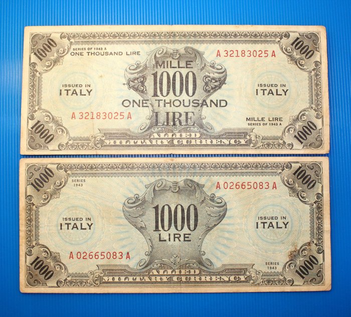 Italië - 2 x 1.000 Lire 1943 - Allied Military Currency - Gigante AM 8A, 14A; Pick M17a, M23a