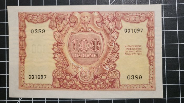 - 1 x Lire 100 Italia Turrita, 10.12.1944 (BI 25A);