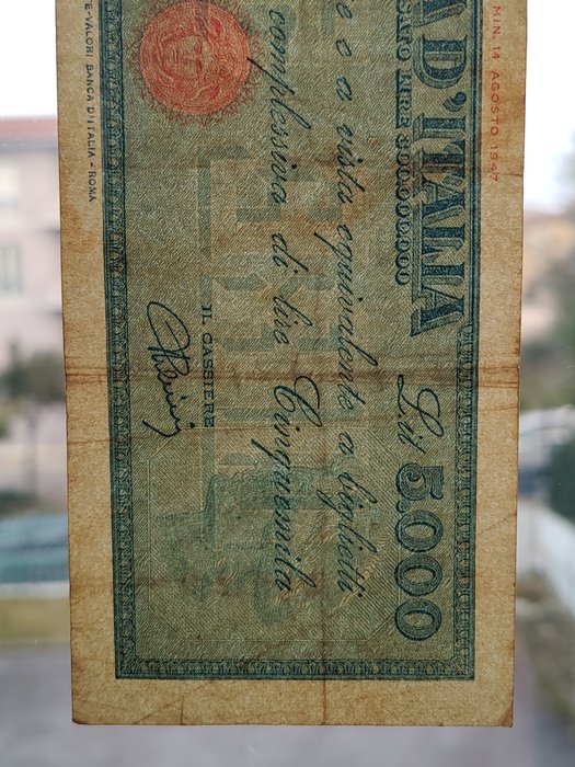 Voorlopige titel van 5.000 lire gedateerd 22-11-1949 (laatste uitgave); originele bewaring, intact en schoon bankbiljet in meer dan goede staat