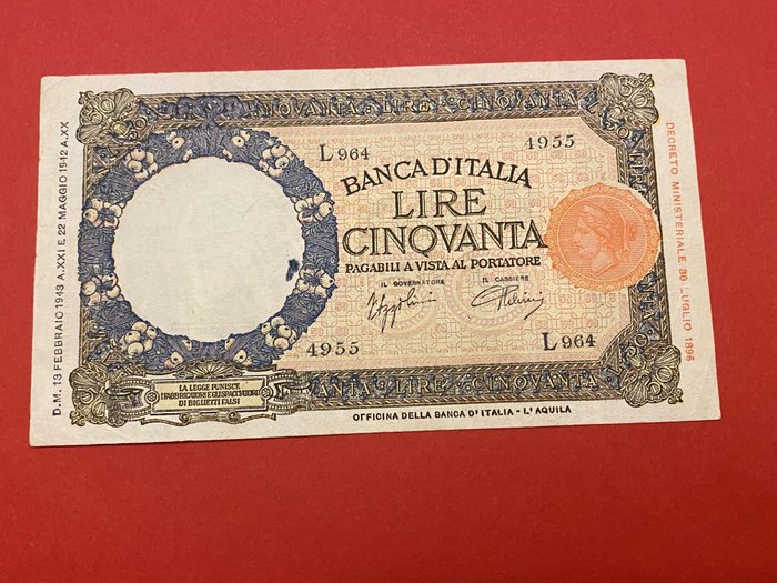 Italië - 50 Lire 13/02/1943 "Lupa" rara con errore - Gigante BI 8C