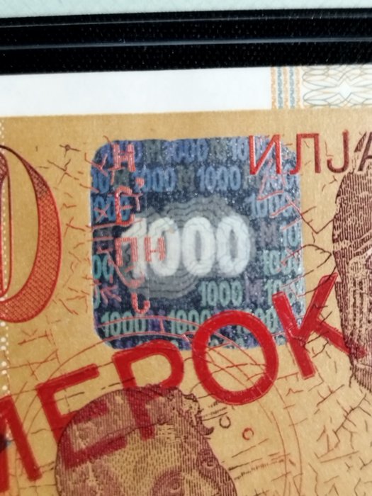 Bankbiljet van 1000 Denari uitgegeven door Macedonië in 2003.