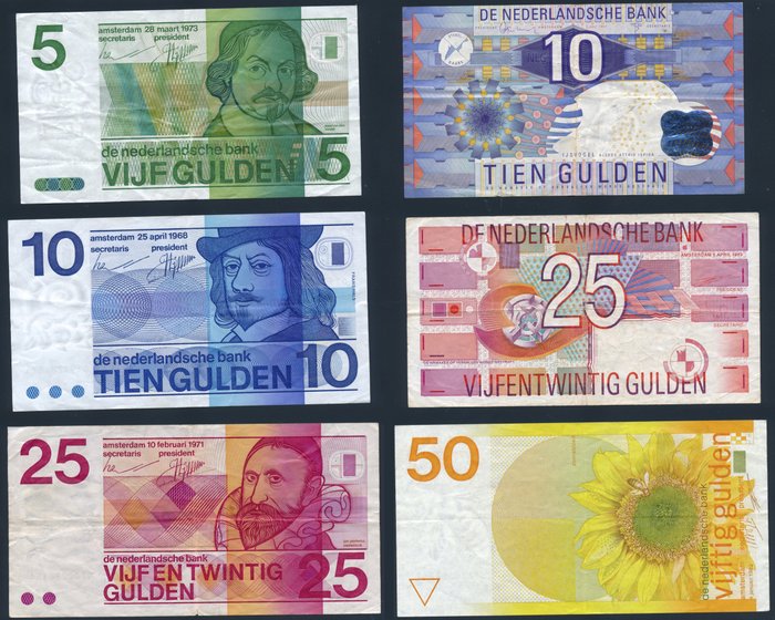 Nederland - 5, 10, 10, 25, 25, 50 Gulden 1968-1997