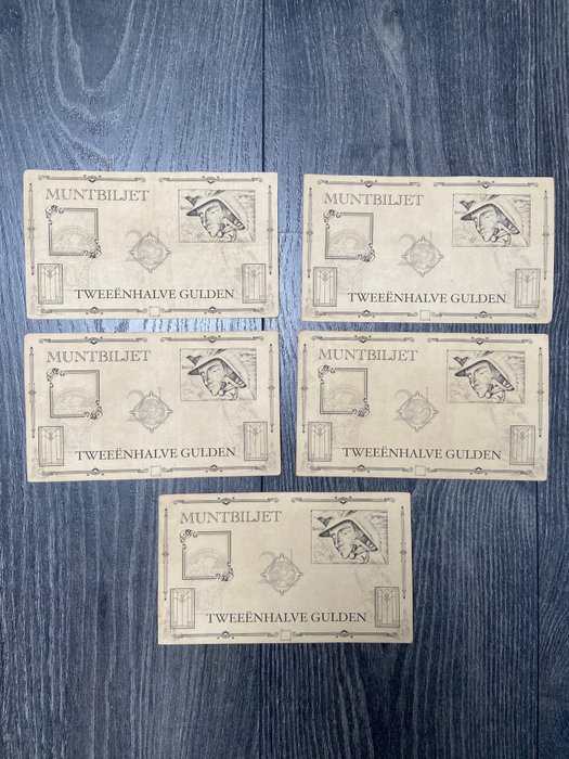 De zeldzame waarde van 2,5 gulden, een set van 5 in opvolgende serienummers. Unieke set!