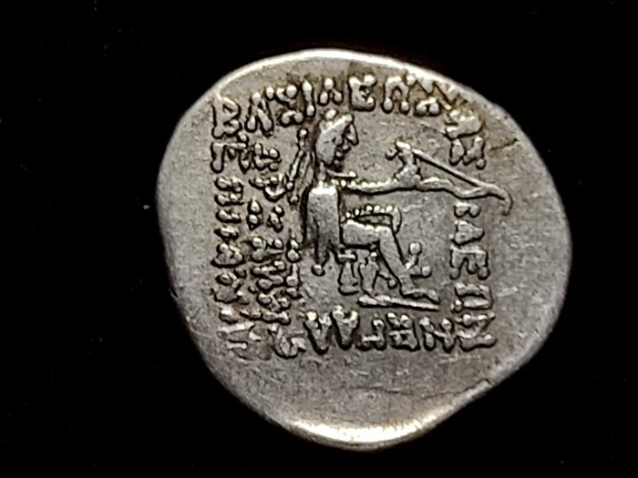 Archer (Arsakes I) zit recht op de troon, met boog vast.