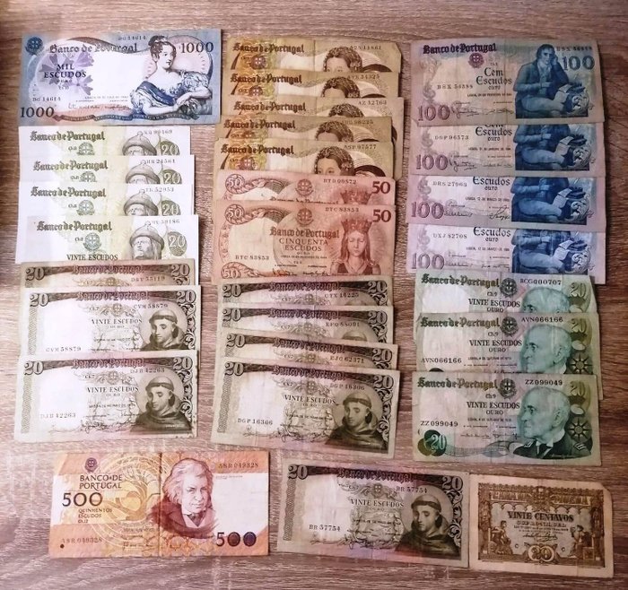 29 bankbiljetten uit Portugal gedateerd tussen 1928 en 1985 met moeilijke cijfers