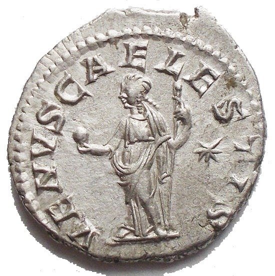 Kz.: VENVS CAELESTIS Venus staande, hoofd naar links gedraaid, met appel en scepter, in het veld naar rechts ster.
