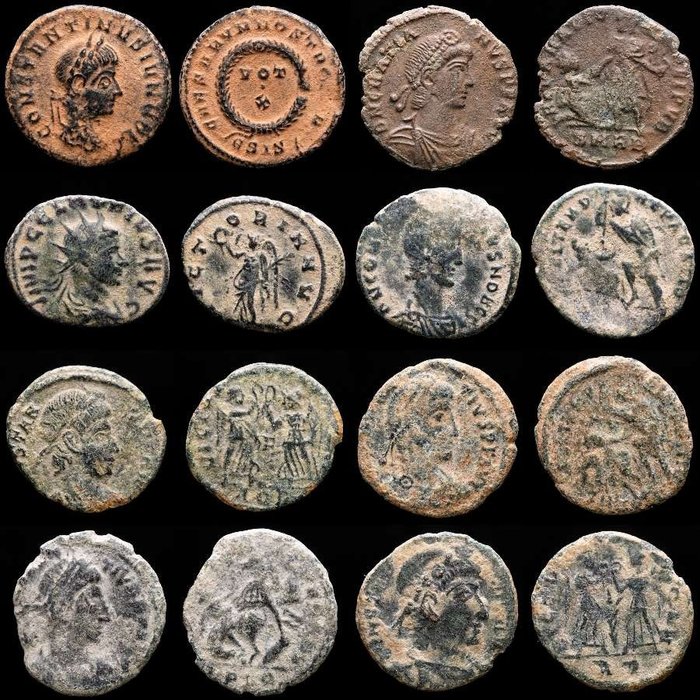 Kavel bestaande uit 8 Æ munten (Antoninianus, Follis en Maiorinas) III-IV eeuw na Chr.