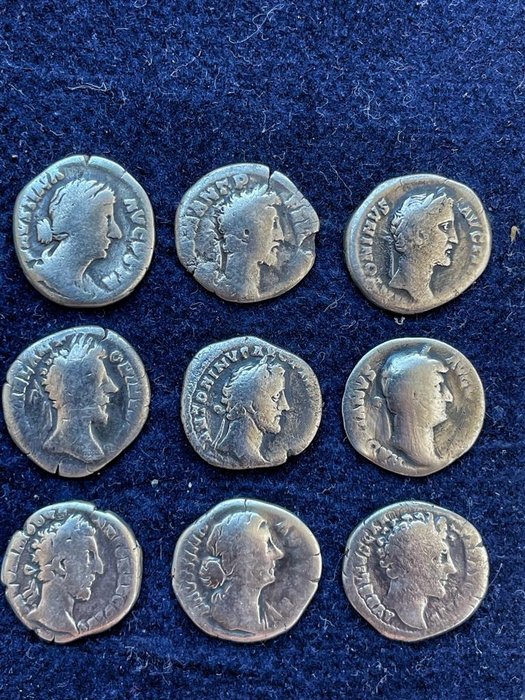 Kavel van 9 Denarii, waaronder voorbeelden van: