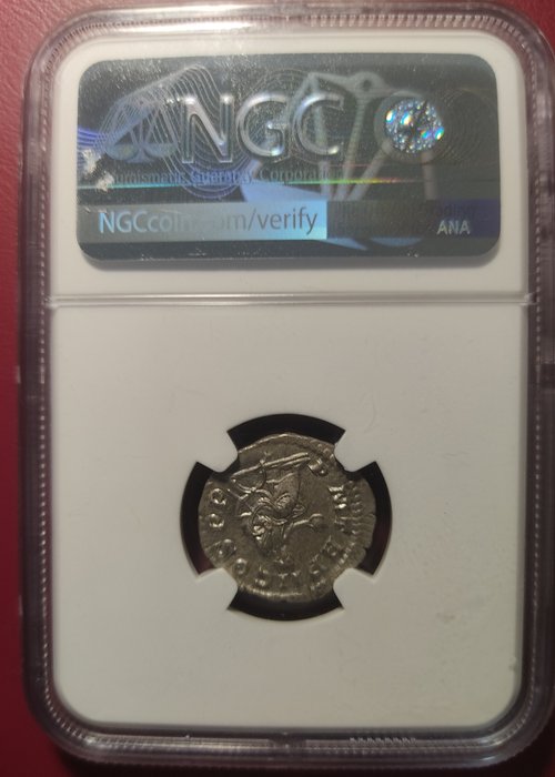 Macrinus (217-218 na Christus). AR denarius. NGC AU (5/5 - 3/5). Rome, december 217 na Christus.