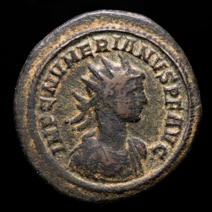 IMP NVMERIANVS AVG, buste met straal en kuras naar rechts. /