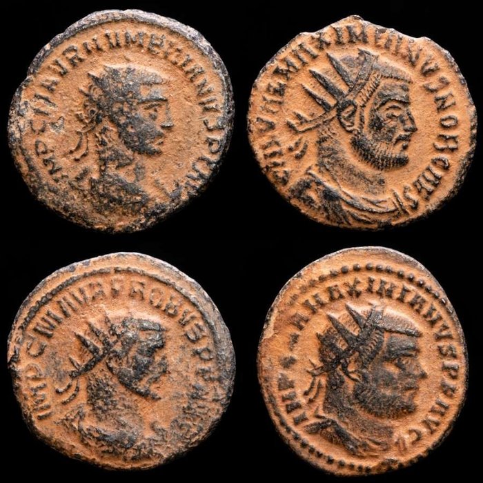 Romeinse Rijk - Kavel bestaande uit vier (4) bronzen antoninianus en stralende follis: