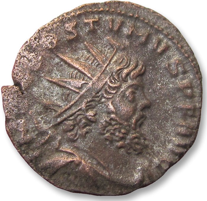 Voorzijde: IMP C POSTVMVS PF AVG Uitstralende, gedrapeerde en gekurasde buste van Postumus naar rechts
