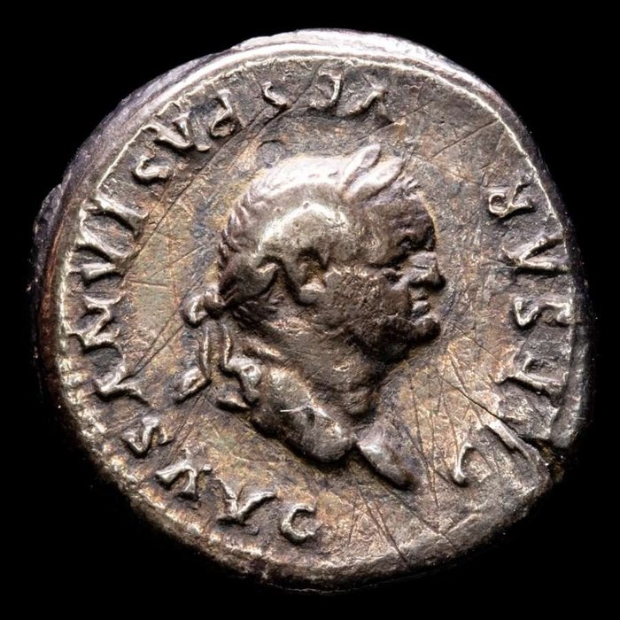 CAESAR VESPASIANVS AVG (↺), gelauwerd hoofd rechts /