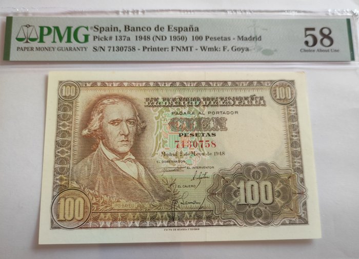 100 peseta's 1948 zonder seriebrief
