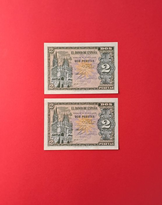 Spanje - 2 x 2 Peseta 1938 - Pick 105 - consecutives