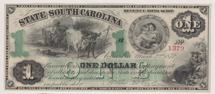 $ 1 US - 1 dollar van de staat South Carolina van 2 maart 1872