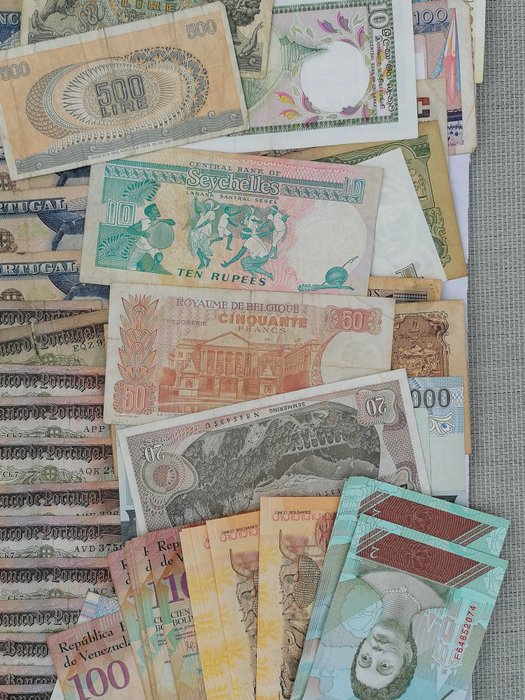 Lot van 100 bankbiljetten uit Frankrijk, Portugal, Italië, Azië en Zuid-Amerika