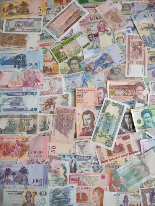 Grote collectie van 105 prachtige bankbiljetten van over de hele wereld, in geweldige ongecirculeerde (UNC) staat. Deze set bevat enkele duplicaten, maar nooit meer dan één duplicaat per bankbiljet. Serienummers kunnen afwijken van foto's.