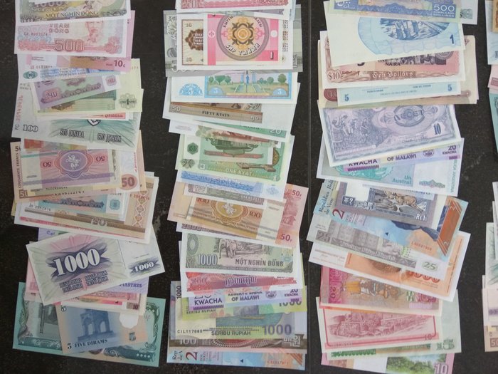 Collectie van 750 stuks biljetten uit een groot aantal landen uit Azië, Amerika, Afrika en Europa.