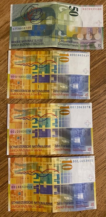 Zwitserland - 3 x 10 and 1 x 50 Franken - Various dates