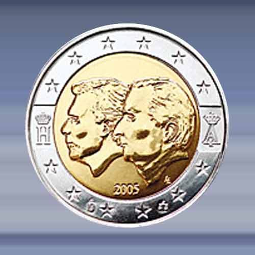Henry & Albert. de 2 EURO munt is verpakt in een zelfklevende munthouder.