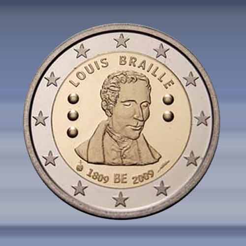 de 2 EURO munt is verpakt in een zelfklevende munthouder.