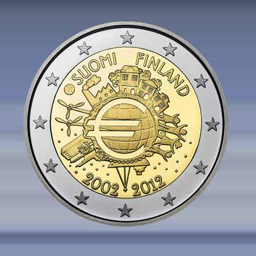 de 2 EURO munt is verpakt in een zelfklevende munthouder.
