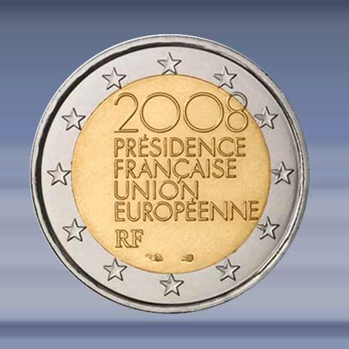President EU. de 2 EURO munt is verpakt in een zelfklevende munthouder.