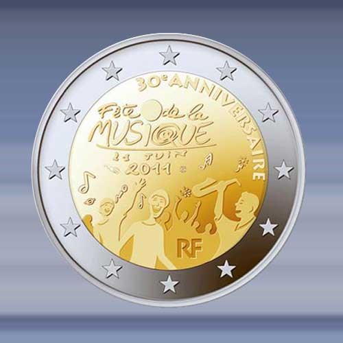 Muziekfeest. de 2 EURO munt is verpakt in een zelfklevende munthouder.