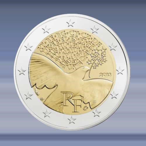 de 2 EURO munt is verpakt in een zelfklevende munthouder.