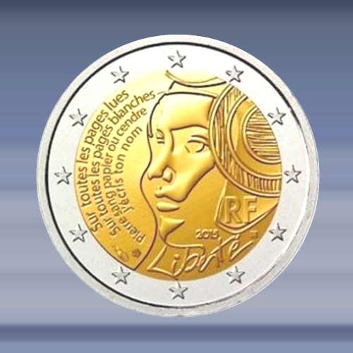 de 2 EURO munt is verpakt in een zelfklevende munthouder.