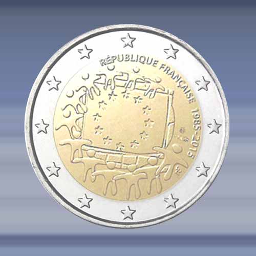 de 2 EURO munt is verpakt in een zelfklevende munthouder