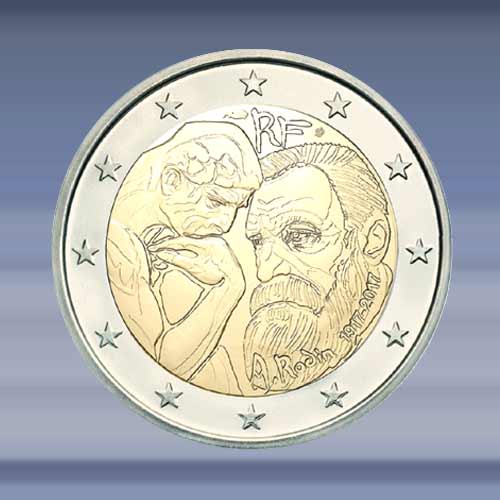 de 2 EURO munt is verpakt in een zelfklevende munthouder.