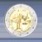 de 2 EURO munt is verpakt in een zelfklevende munthouder.