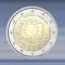 de 2 EURO munt is verpakt in een zelfklevende munthouder.
