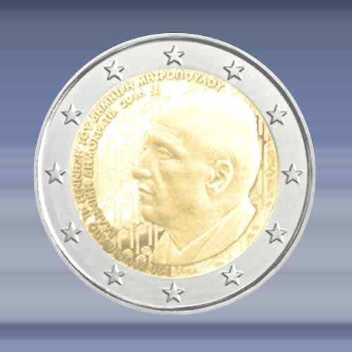 de 2 EURO munt is verpakt in een zelfklevende munthouder.