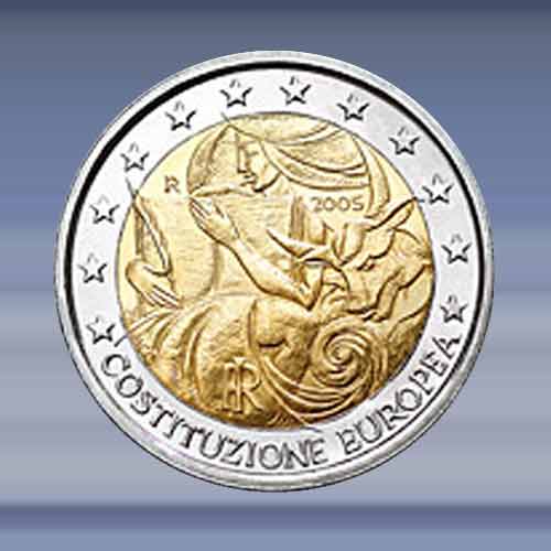de 2 EURO munt is verpakt in een zelfklevende munthouder.