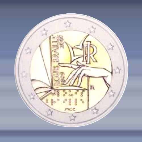 de 2 EURO munt is verpakt in een zelfklevende munthouder.