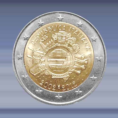 de 2 EURO munt is verpakt in een zelfklevende munthouder.