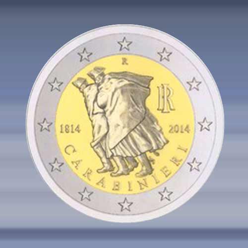 de 2 EURO munt is verpakt in een zelfklevende munthouder.