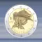 de 2 EURO munt is verpakt in een zelfklevende munthouder.