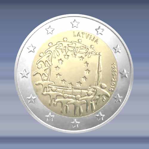 de 2 EURO munt is verpakt in een zelfklevende munthouder.