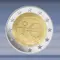 de 2 EURO munt is verpakt in een zelfklevende munthouder.