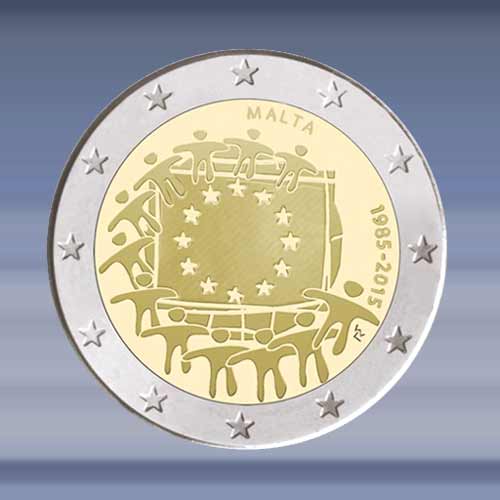 de 2 EURO munt is verpakt in een zelfklevende munthouder.