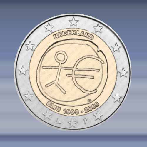 de 2 EURO munt is verpakt in een zelfklevende munthouder.