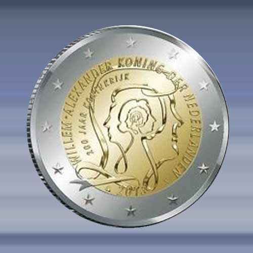 200 jaar Koninkrijk. de 2 EURO munt is verpakt in een zelfklevende munthouder.