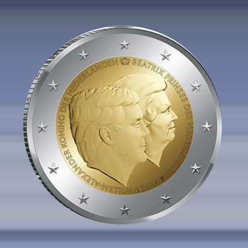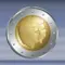 de 2 EURO munt is verpakt in een zelfklevende munthouder.