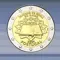 de 2 EURO munt is verpakt in een zelfklevende munthouder.