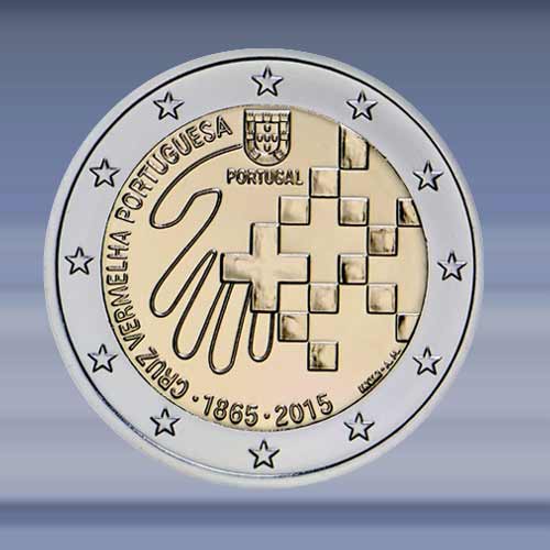 "Rode Kruis" de 2 EURO munt is verpakt in een zelfklevende munthouder.